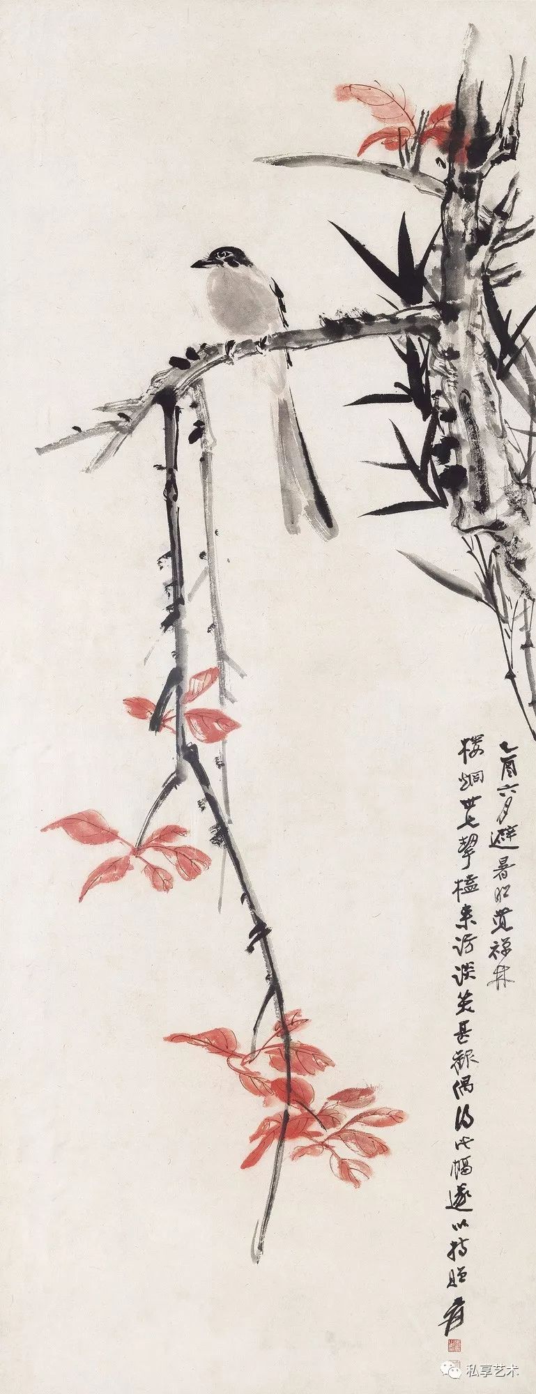 张大千 红叶小鸟