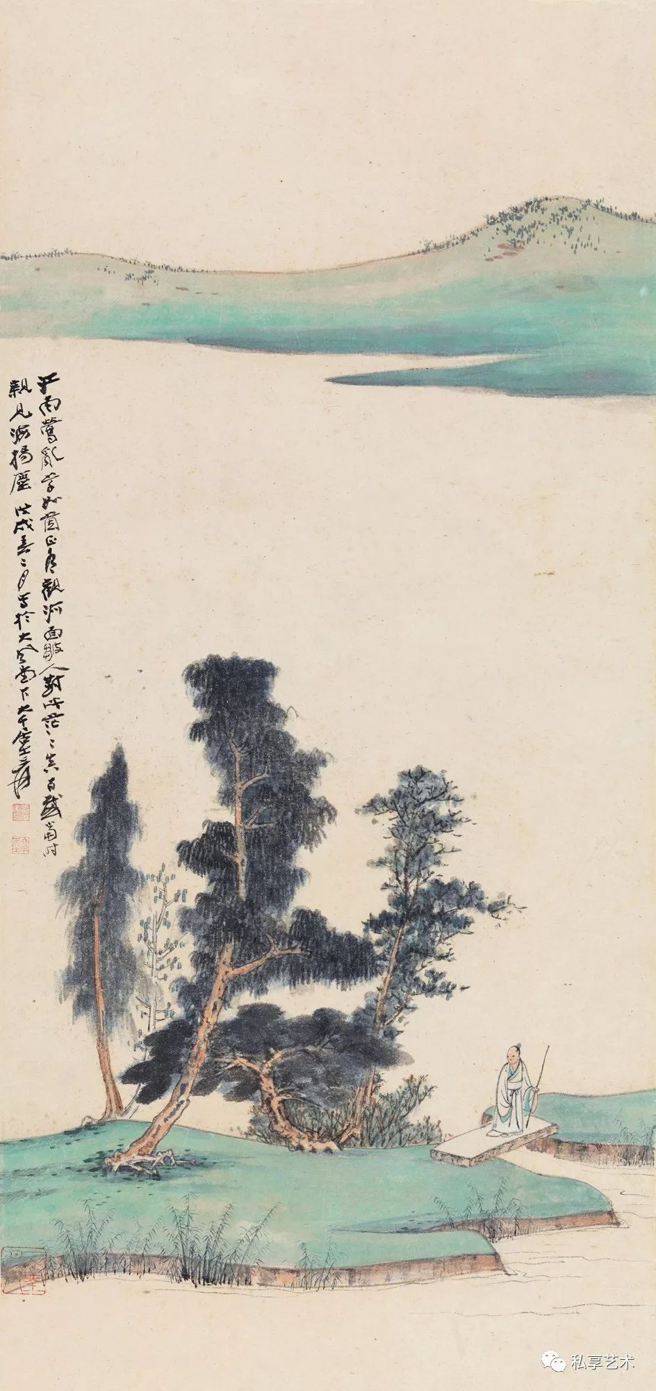 张大千 江堤晚景