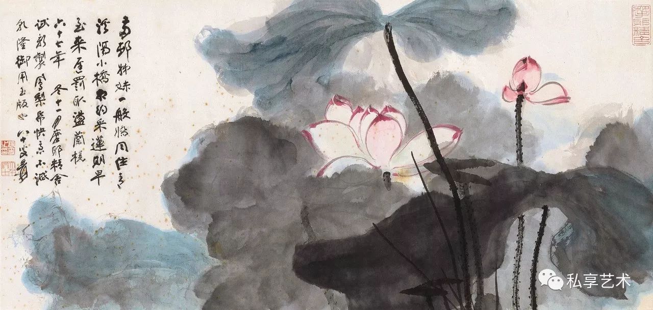 张大千 红荷图