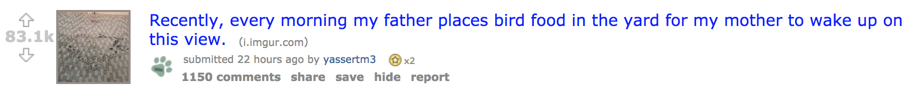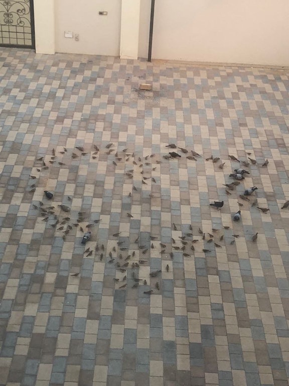 最近每天早上我爸都会把鸟饲料摆在院子里这样我妈一起床就能看见下面这一幕: