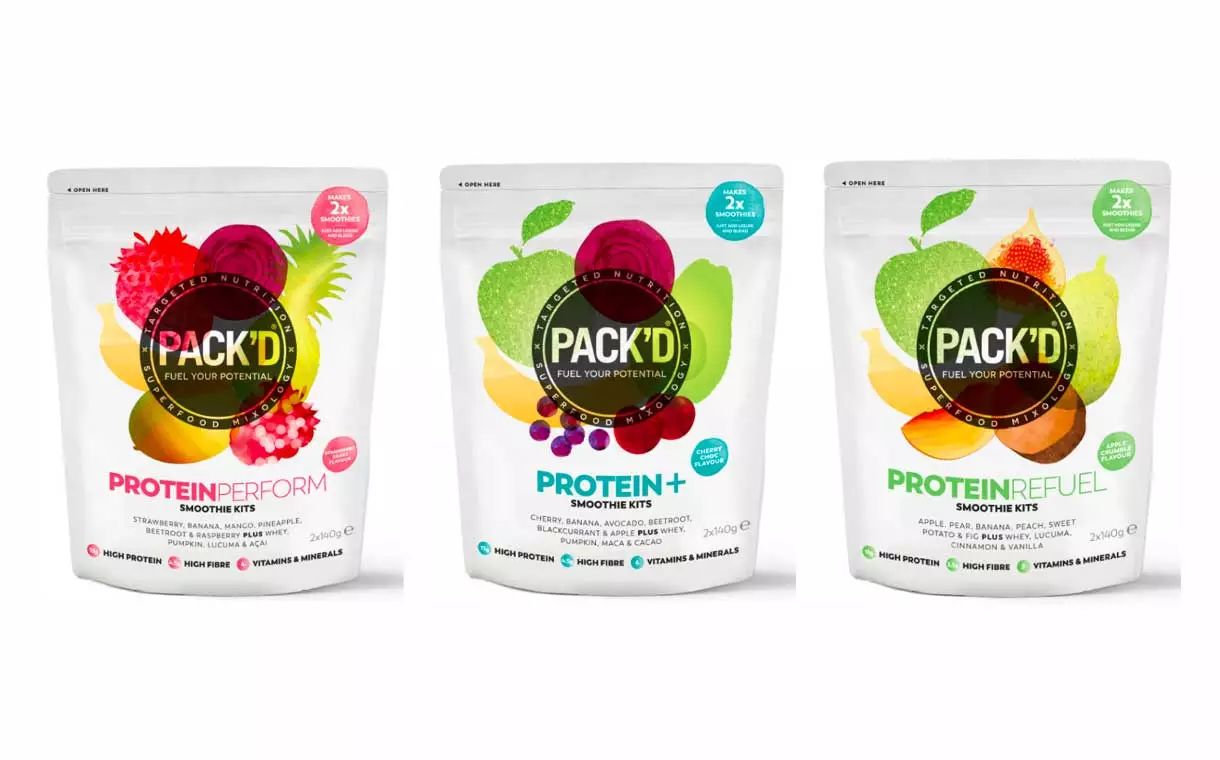 英国健康食品公司Pack'd推出了三款冷冻smoothie包,来重新定义蛋白质奶昔类别。Pack’d公司与运动营养师合作设计此款冷冻smoothie包,该产品混合冷冻水果和蔬菜,再加入多种有机乳清蛋白,共有三种口味:樱桃巧克力味、苹果碎味和草莓奶昔味。原料包括:甜菜根、甘薯、无花果、樱桃、巴西莓和路枯马桃榄。