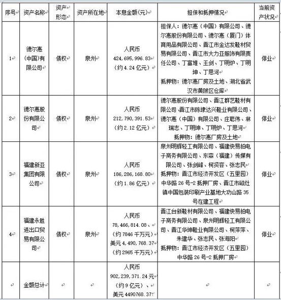 其实早在去年12月14日,中国东方资产管理股份有限公司就发布了一则债权资产包的处置公告,这个债券公告涉及到三家晋江企业,其中就有大名鼎鼎的德尔惠。