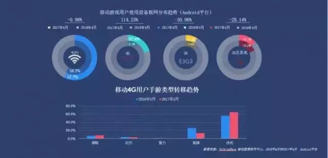 此外,根据TalkingData在去年Chinajoy期间发布的的数据显示,移动游戏用户设备联网分布趋势,在4G网络方面有明显增幅的增长,增长率达到了114.23%。从这些数据中不难看出,越来越多的玩家将自己的流量花费在游戏上。
