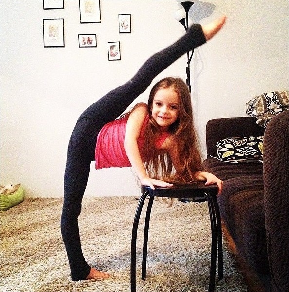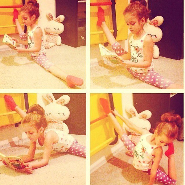 不过,即使在童模界炽手可热,米兰似乎也没有放弃自己从4岁开始就坚持练的艺术体操,还是经常进行各种体操训练。