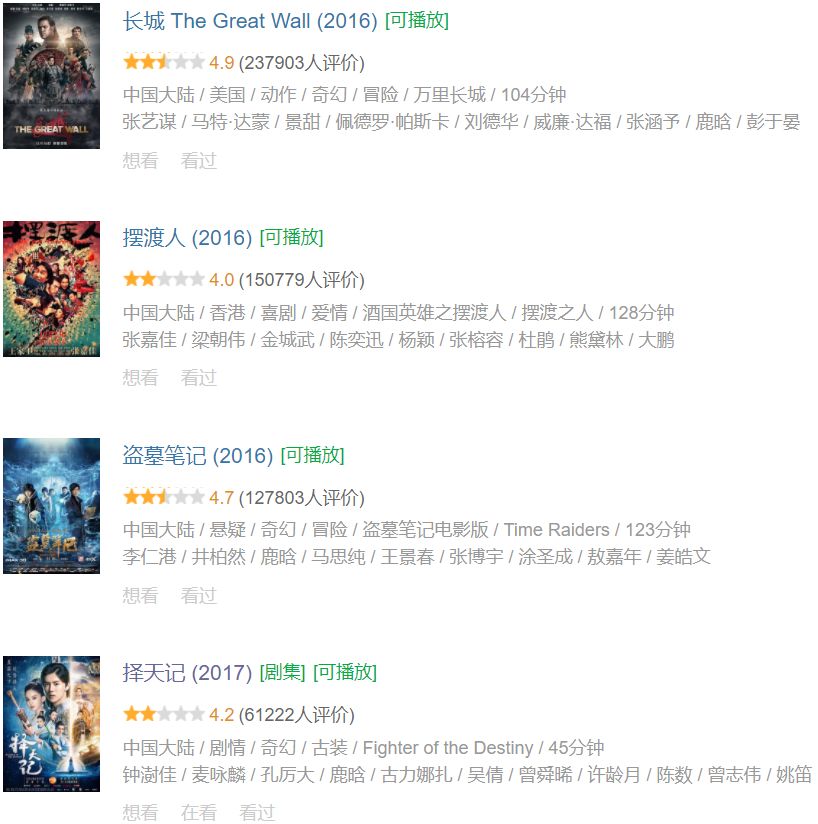 鹿晗主演的影视作品,在豆瓣的评分大多都不高,《择天记》4.2、《盗墓笔记》4.7、《摆渡人》4.0。同样是“EXO四子”、被常拿来和鹿晗比较的张艺兴,起码还有一部《老九门》来证明自己的实力。