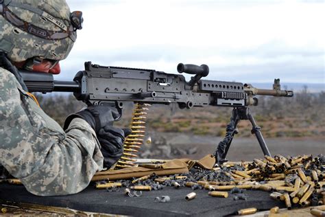 M240可用于打击点目标,例如敌军士兵和轻型车辆,或提供支援火力。M240使用较重的7.62毫米子弹,最大有效射程可达1800米。