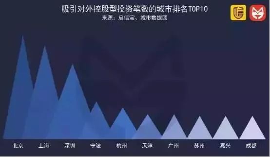 由上图可见,吸引外来控股型投资笔数最多的前三名的还是“北上深”。相比投资排名,宁波抢到了第四名,超过了杭州。