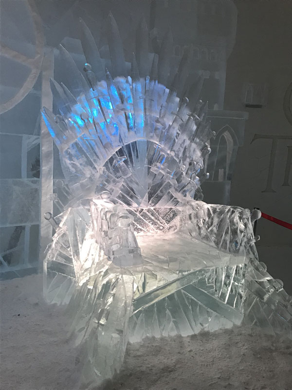 温馨提示,这家酒店夏季不开放(冰会化),每年11月会换下一年的冰雕主题,所以2018年4月之前,你都可以去那里坐一坐冰凉的铁王座。