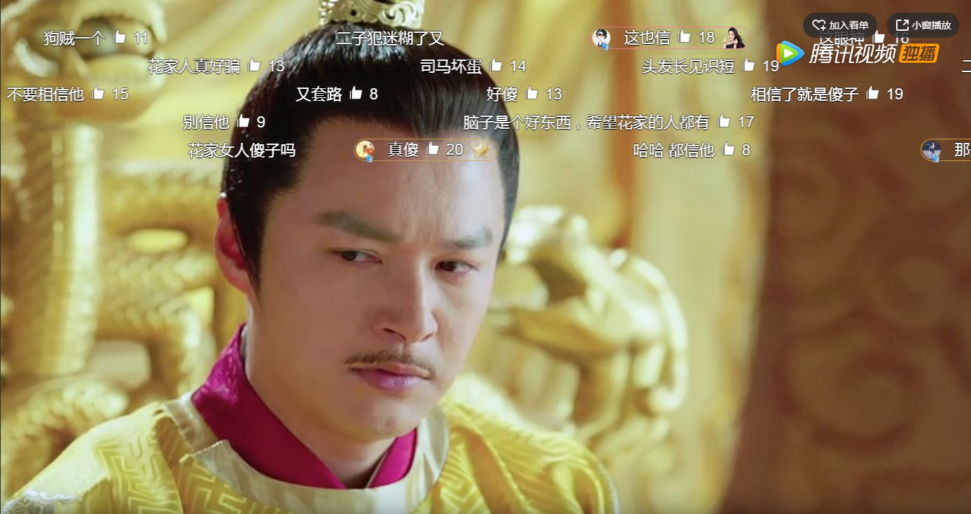 而另一个女主角李心艾,网友们对她也是颇有微词。只要有她出现的镜头,弹幕必定是关于她是否整容、长胖的讨论。从《锦绣未央》中的李长乐到《花谢花飞花满天》中的倾城公主都是如此。