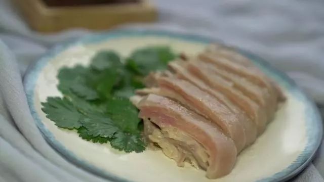 6.羊肉取出,切片后装盘,上桌前淋少许汤汁。