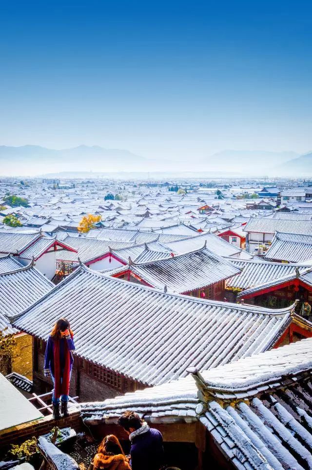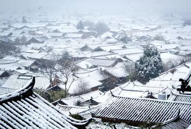 总给人以艳丽色彩印象的丽江,在下雪的日子颜值会更高一层,即所谓“冷艳”!