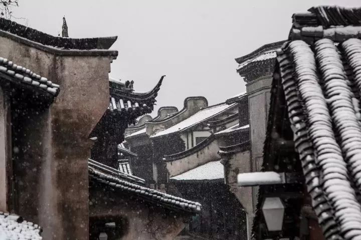 漫步南浔,当雪飘飘散散落下,油然而生一笔惬意、一丝韵味、一片风情。
