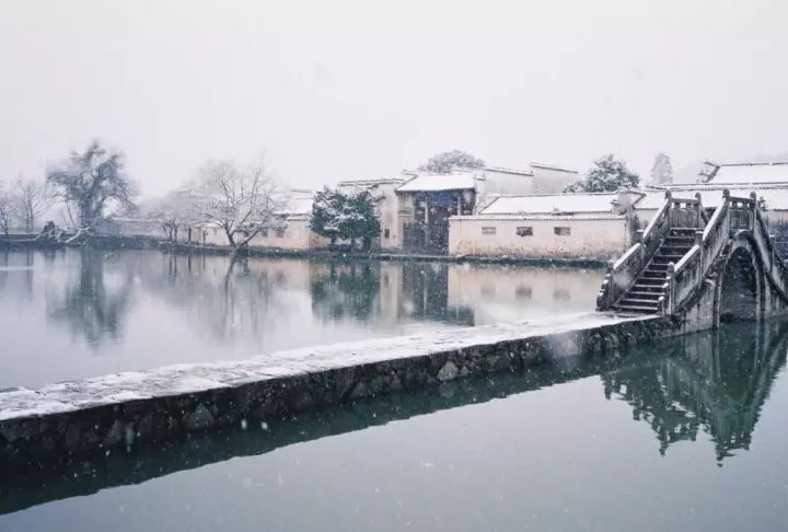高高昂起的马头墙,湖水清莲,拱桥如虹,被称作“画里村庄”的宏村,遇上冬雪,更是仿佛从画中来。