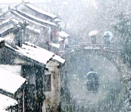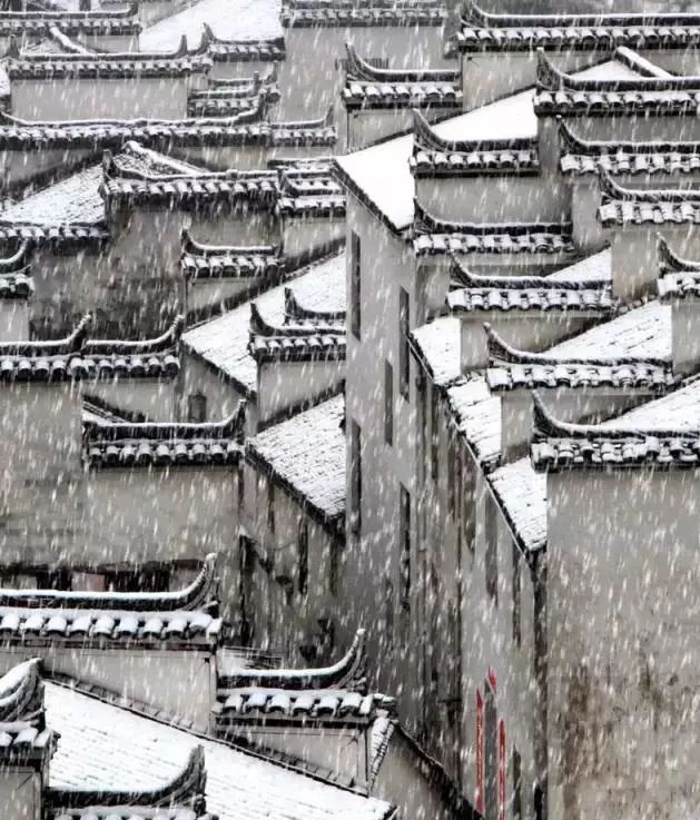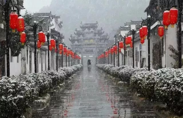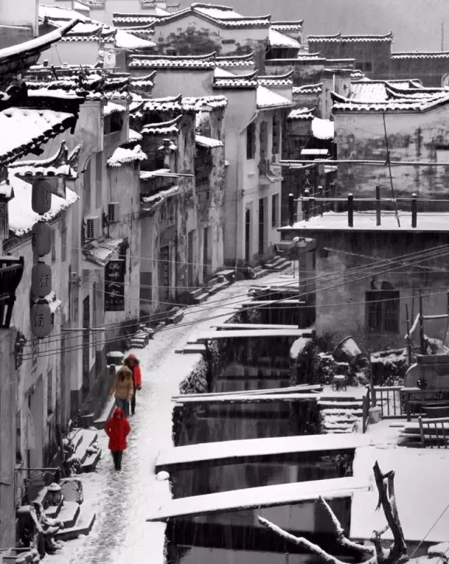 当飞雪飘进婺源,飘过粉墙黛瓦,落在马头墙上、小巷街道上,这是冬日的水墨婺源模样。
