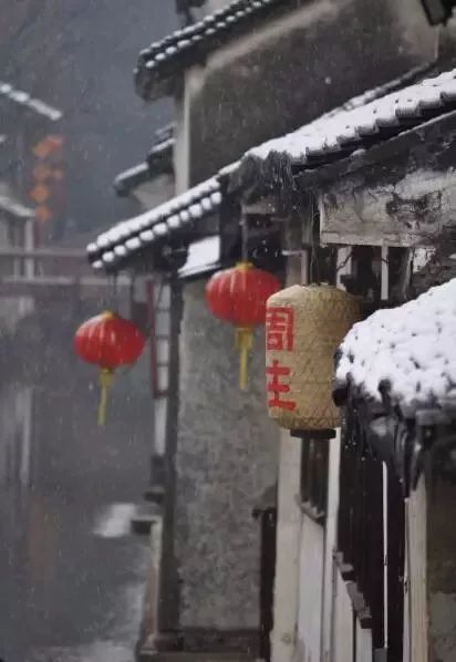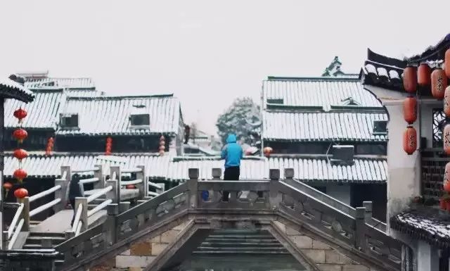 石桥、长廊、灯笼、小雪……这座活在时光里的古镇,最美不过落雪时。