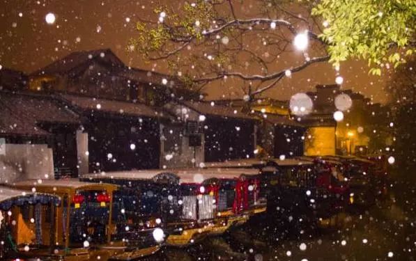 柔和的雪就这样洒在房顶、街道、小巷深处、桥头乌篷上……