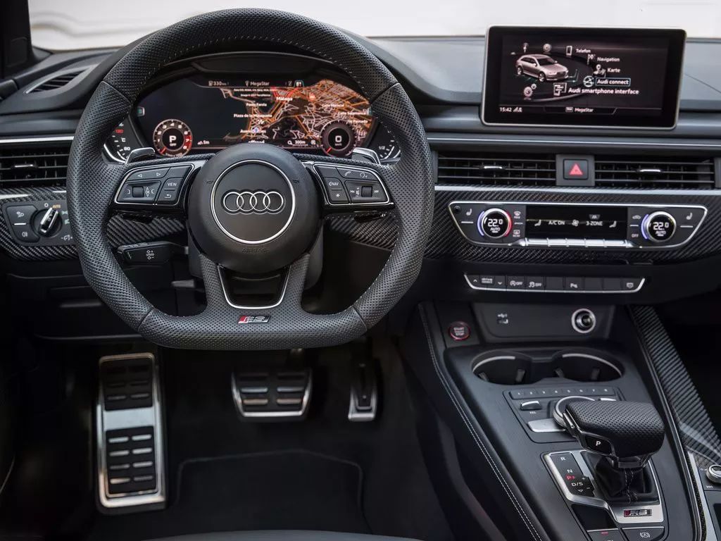 RS4 Avant在动力部分将采用奥迪与保时捷共同研发的2.9T V6双涡轮增压发动机,匹配8AT。最大功率450马力,最大扭矩600N.m。嗯,排量就是没到3.0L,我没写错,这款发动机在后面的RS 5 Coupé上还将提到。其在保时捷方面,最大扭矩是550N m,而经过奥迪高性能车部门的调校后,拥有更为暴力的数据。另外,这款发动机还有更多的设计优势,比如气缸夹角为90度,两颗涡轮增压器并联于气缸夹角上部,并采用反置进排气布局,使进气歧管更短,涡轮响应效果更直接,减轻迟滞。此外这种布局还提升了空间利用率,使发动机整体结构更加紧凑。得益于重量的降低,也有助于前置引擎的RS 4 Avant和RS 5 Coupé有更均衡的前后配重,在弯道上更加灵活。