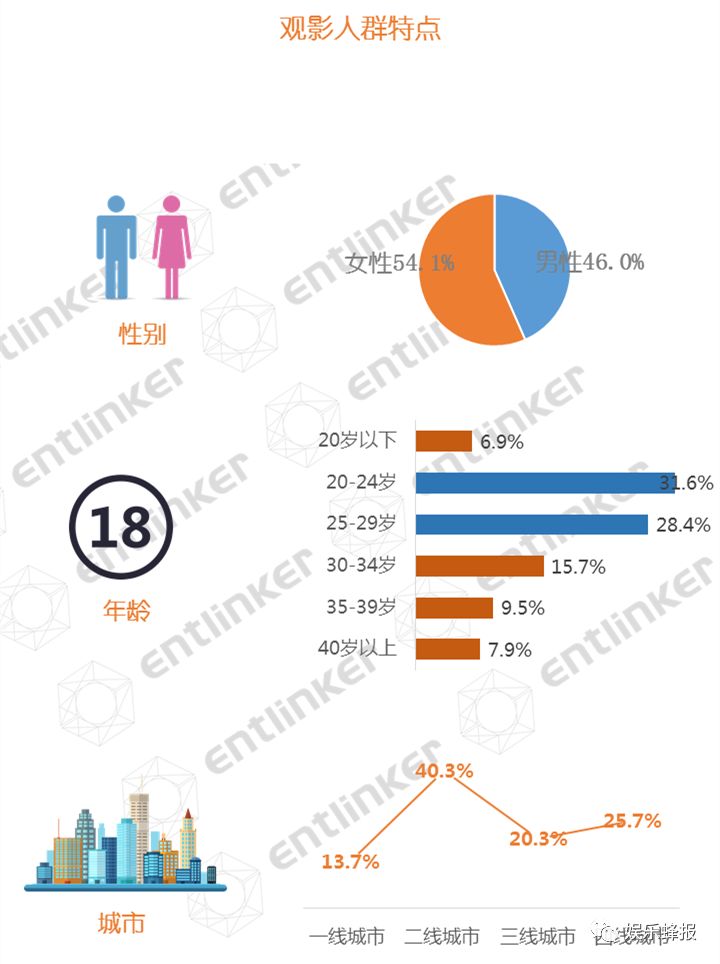 电影上映前,宣发方猫眼给出的影片定位是“合家欢全民喜剧”,打造成有品质的喜剧,所以在宣传上并没有局限在某一群体上,从票房上也可以看出二三四线城市的贡献力均超过了一线城市。