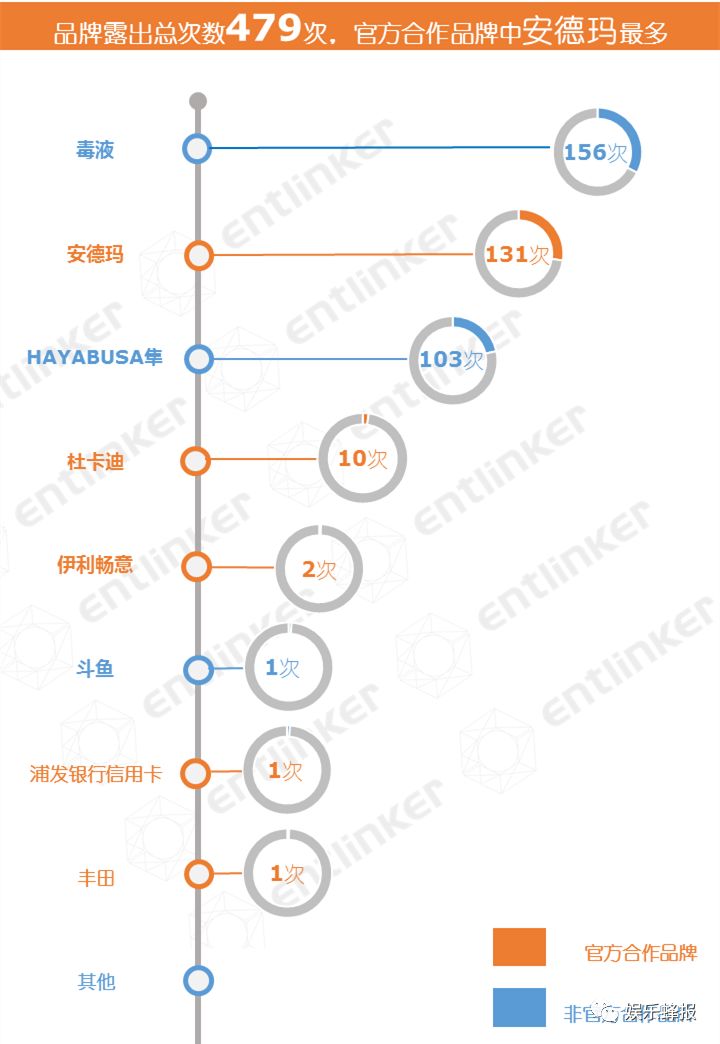 而在品牌合作上,5个官方合作品牌,UA安德玛成了最大赢家。