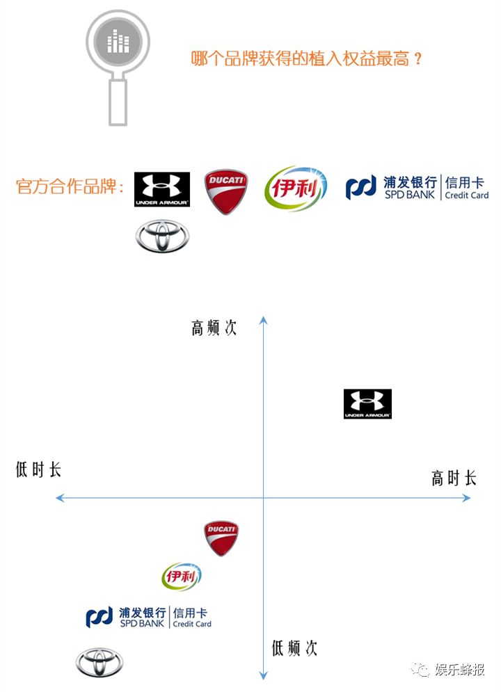 相对而言,浦发银行信用卡、丰田作为官方合作品牌,却仅仅只有1s的植入时间。浦发银行信用卡的这段植入是后期P上去的吧,尴尬不尴尬。