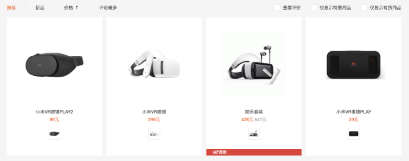 2016年10月,小米曾在秋季新品发布会上推出了小米VR眼镜正式版,截至目前,小米官网显示在售的VR设备共计有四款。