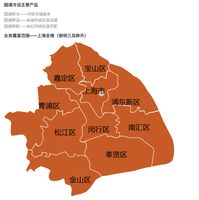 相应地,界面新闻记者在圆通官网发现,圆通发布了圆通冷运,包括冷链仓储服务、B2B同城低温运输(城配)和B2C同城低温宅配,但根据官网显示,目前冷运业务只限于上海区域。