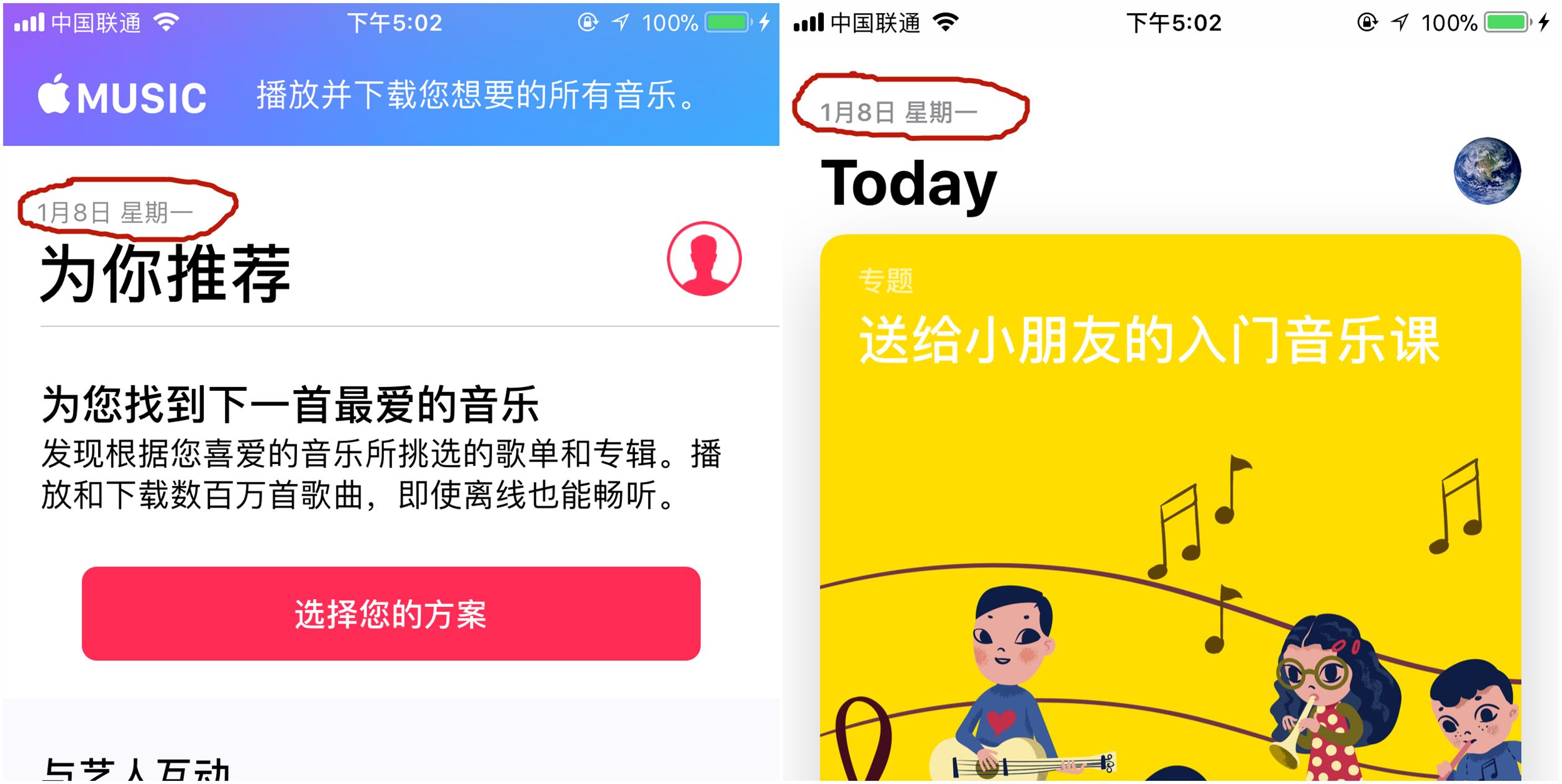 ▲左:Apple Music(字重较轻);右:App Store(字重较重)