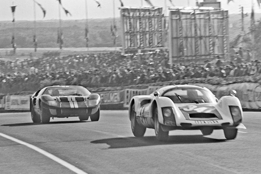 1968和1969年,福特GT40再次席卷勒芒24小时,这次笑到最后的是跑车组别的GT40 Mk.I。1969年由杰基 伊克斯领衔的6号GT40以一种非常巧妙的方式击败了汉斯 赫尔曼领衔的保时捷908——比赛最后一圈,伊克斯和赫尔曼依旧在缠斗当中,此时GT40受到了排气故障的影响,眼看要守不住了,伊克斯故意在慕尚直道上放赫尔曼过去,然后依靠908的尾流成功在直道末尾反超,908的刹车撑不住了,最终伊克斯领先赫尔曼120米冲线。这是福特最后一次在勒芒赢得全场冠军,保时捷在经过本次失利后,开始着手打造Gr.4组别的原型车杀手——12缸的保时捷917。