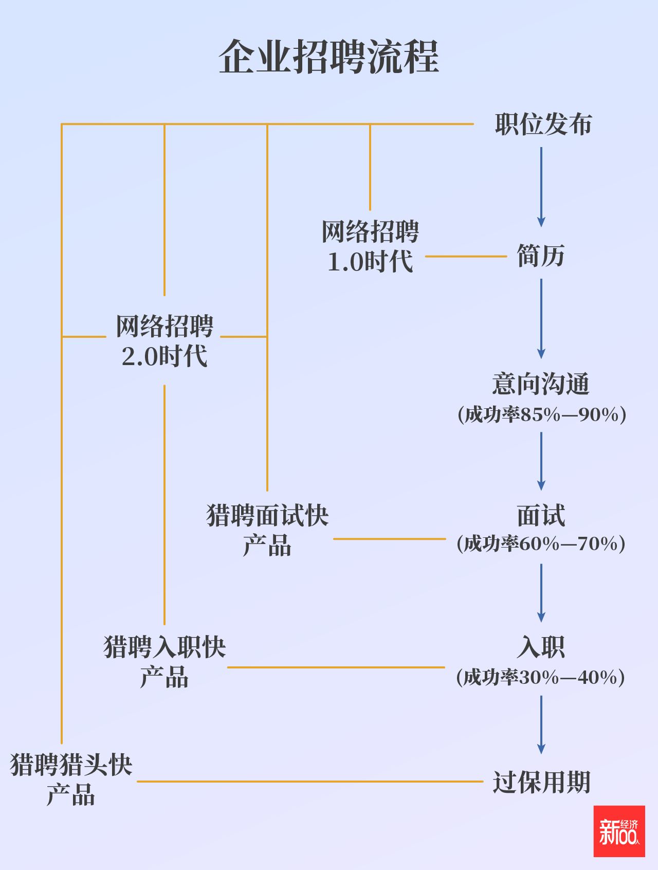 大部分招聘企业都无法得知候选人入职信息,网络招聘1.0时代只能追踪到简历阶段,猎头服务能够追踪至过保。猎聘为了打造全闭环追踪流程,相继推出面试快、入职快等产品,能够继续跟进候选人的招聘信息。