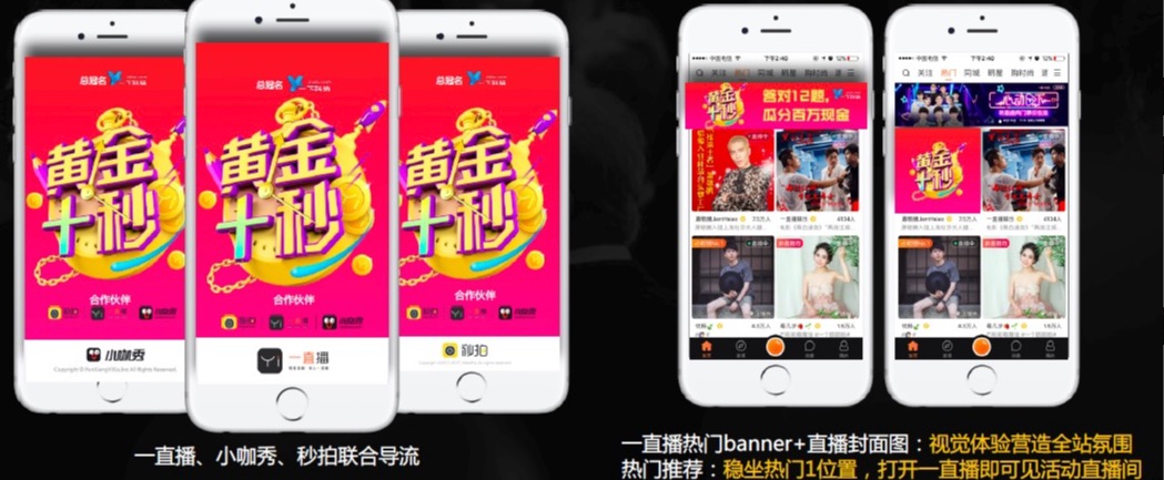 黄金十秒负责人:我个人觉得绝大多数直播平台没有这样的积累,当你主要做的是全民直播、秀场直播的时候,单个直播间同时在线不会超过几万人。我们一开始主打的就是明星直播,面临的压力跟其他平台是不一样的。