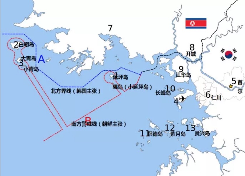 韩国在这里的“西海五岛”,基本是跨过三八线以北比较远了,突进到朝鲜黄海南道那边去了。而且对于这个西部海域海上分界线,朝鲜是不承认的,同时美军在这里掌握了韩军和联合国军的军事指挥权,所以这里出的问题比较多。