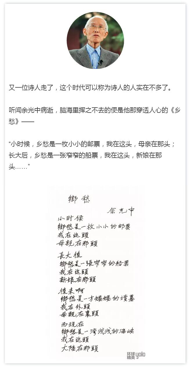 余光中的走,是在意料之外的。