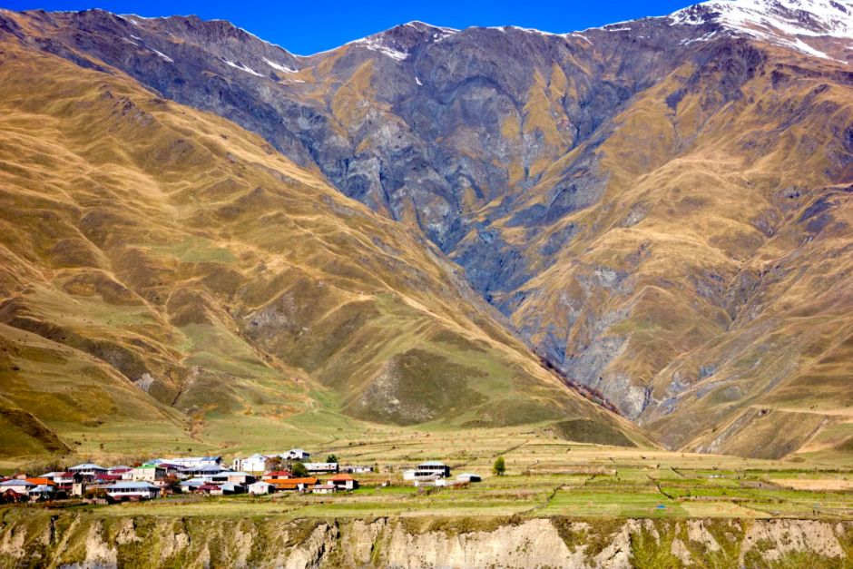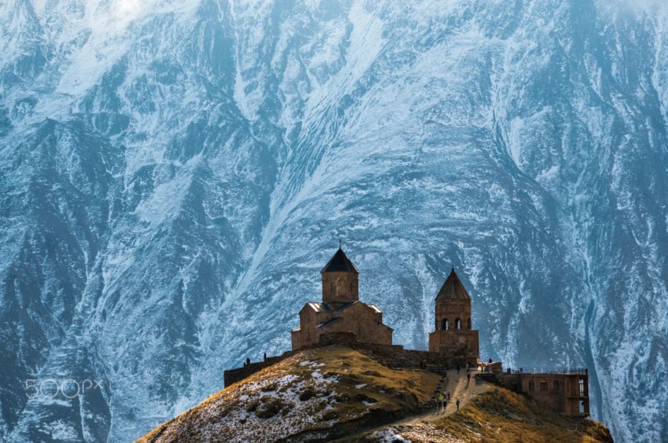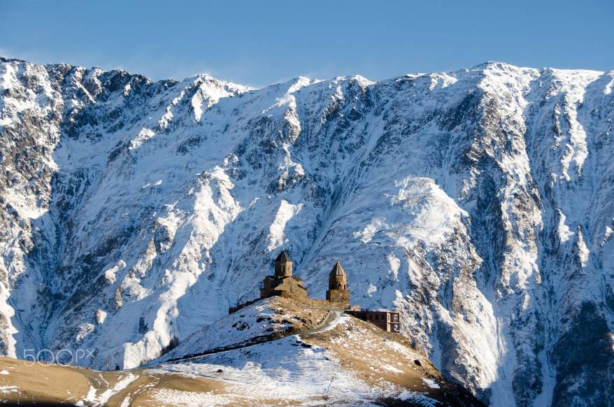 从第比利斯驱车前往卡兹别克山, 大约3、4小时车程,且全是山路。虽然地远难行,但这里作为高加索地区最美丽的景色之一,还是值得特意驱车前来。一般的登山游客都是从Stepantsminda小镇出发,完善的旅游设施让山脚下聚集了不少国外游客。