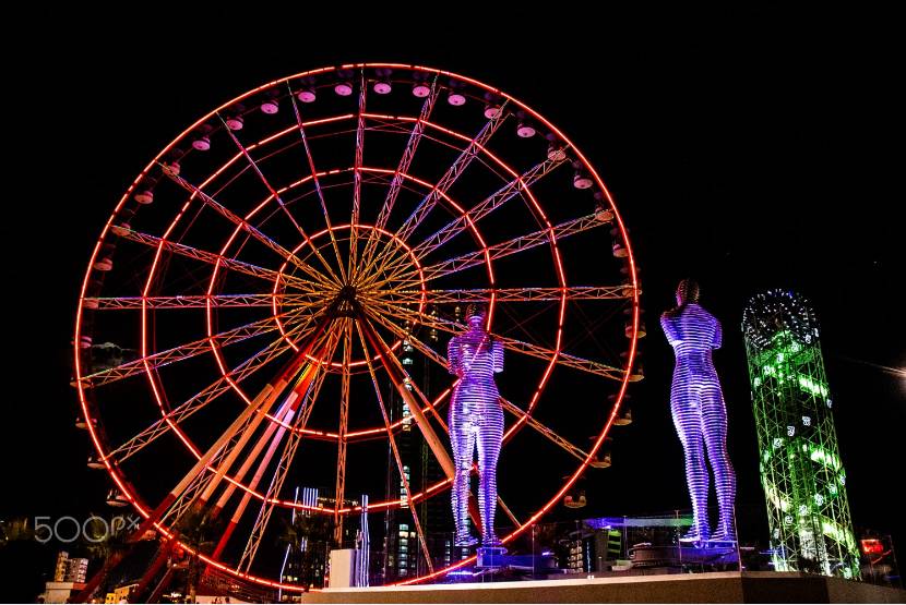 沿着黑河有一条步行街,不仅风光一流,还充满了艺术和浪漫气息。一路上有各种以爱情和情侣为主题的艺术品。最出名的两尊移动雕塑——Ali &Nino,根据同名故事中的主人公创造,一个穆斯林男孩和一个基督教女孩在布尔什维克年代被拆散的悲剧爱情故事。这两座雕塑每天不断移动,周而复始地经历分离和重逢,让人不禁叹息爱情的磨人。