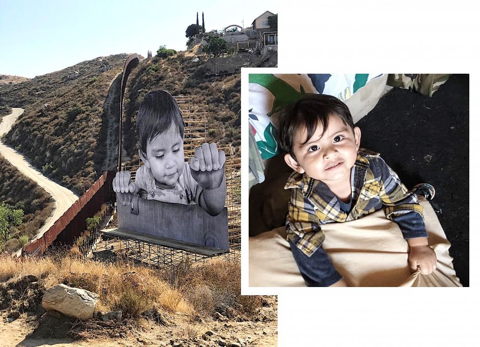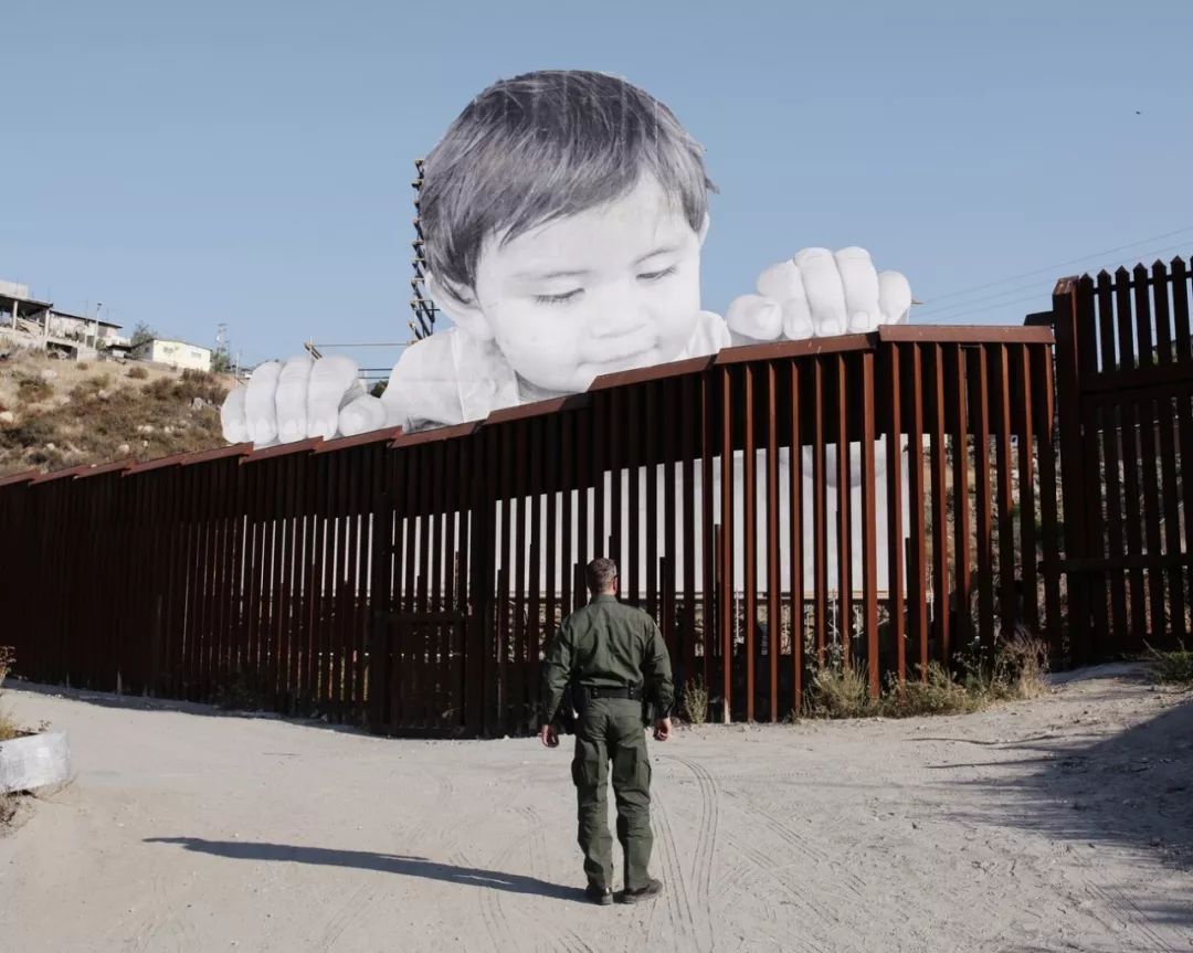 去年9月,在墨西哥城市Tecate与美国圣地亚哥市的边界上,出现了一个高达19公尺的“巨婴”,他抓着美墨边界的围墙,好奇地往墙下的加州看,JR在自己的Twitter上写道:“Kikito(一个很普通的墨西哥小孩)在去年的4月刚满一岁,在未来的一个月你都可以在Tecate的边界看到他。”