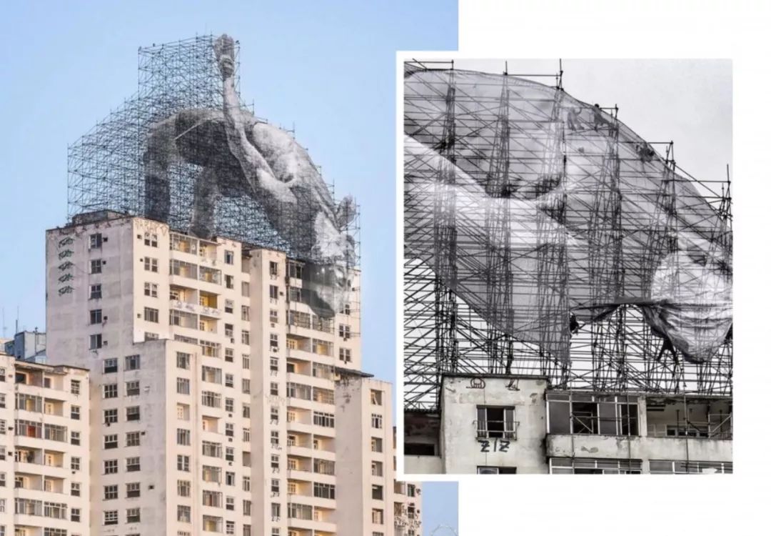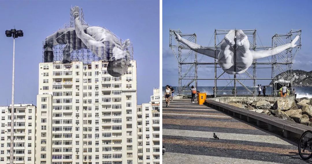 2016年里约奥运会开幕前夕,JR受到那些默默无闻,却依然怀揣着运动梦想的人们启发,特意为这座城市献上了巨大的公共艺术项目——两位用金属脚手架支撑起的“运动员”。