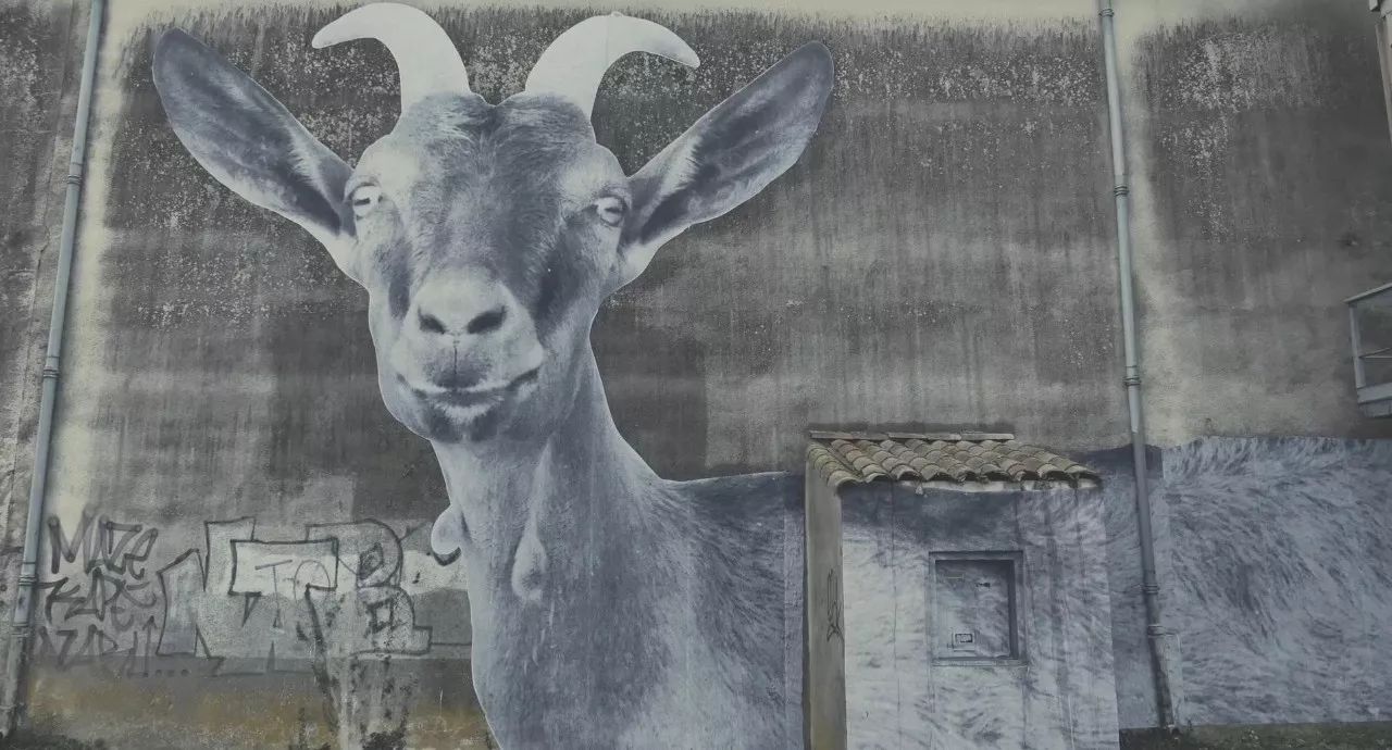 于是瓦尔达和JR贴了一只山羊来向她致敬,有角的。