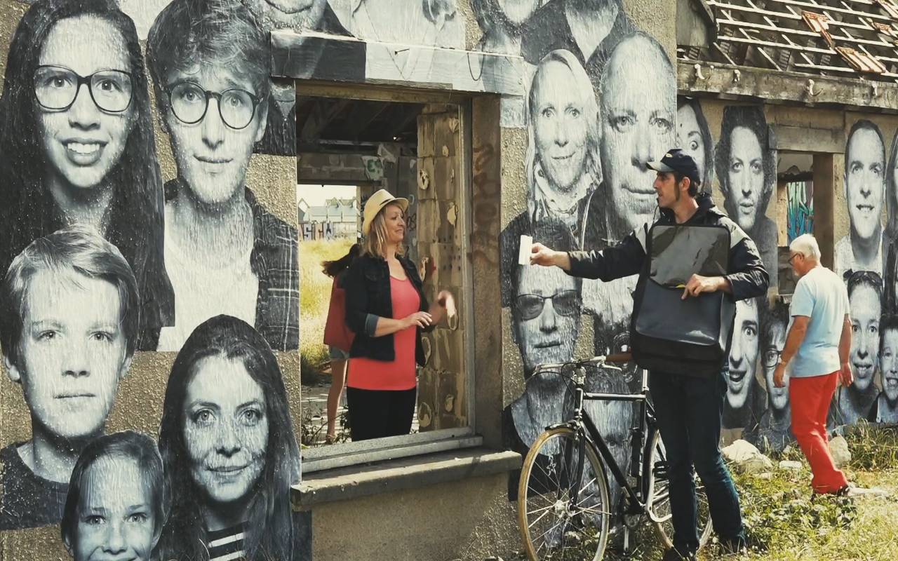 JR,神秘的法国街头艺术家,他从来不摘下墨镜,也从不透露他的真实姓名。他通过张贴巨幅照片来传达自己的艺术理念。
