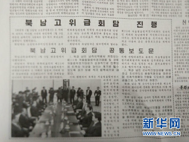 不过,该报还在第六版刊登了一篇评论文章,标题为《高举民族自主的旗帜》,虽然没有直接提及朝韩高级别会谈,但也体现了朝方对朝韩关系改善的态度。