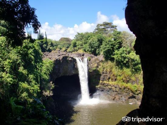 这是希洛最美的一抹风景。如果可以的话,爬上楼梯去远眺风景,看看那些大榕树吧。然后可以开到更远的地方去看沸腾的温泉。这里有免费的停车场,还有一条很短的人行道,可以看到这些瀑布。还有一个更陡的小道爬上瀑布的顶部,还有一个肮脏的小径,它带你到河流的水边,欣赏双瀑布景观。不过要小心,水流相当大,瀑布下面的水不深。