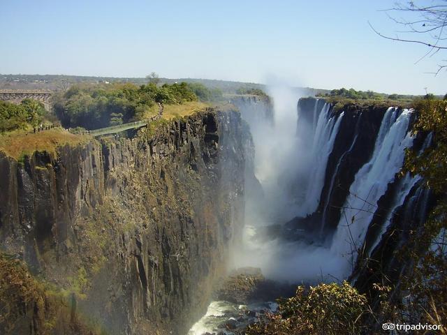 维多利亚瀑布位于非洲赞比西河中游,赞比亚与津巴布韦接壤处,两国称它的名字意思都是“声若雷鸣的雨雾”(或“轰轰作响的烟雾”)。彩虹很漂亮。 但什么能胜过彩虹呢? 当然是月虹。 如果您在满月之日游览维多利亚瀑布,月光透过水雾会产生一道月亮彩虹,或者叫月虹。 如果您敢于冒险, 那么不妨试试被称作世界上最棒的激流勇进吧。