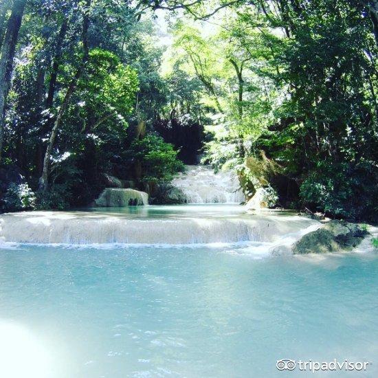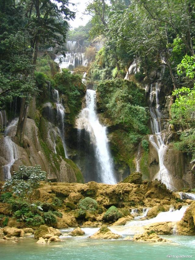 琅勃拉邦最高的地方之一,从市区去瀑布的车程大概一个小时。你可以自己乘坐嘟嘟车去,会便宜一点。这些瀑布坐落在美丽的森林里,如果你经过池塘,可以欣赏和拍摄令人印象深刻的瀑布。如果你又不喜欢雨季,建议可在雨季结束旱季来临前(约9月底至11月底)来走访这个美丽的地方,也可穿上一套漂亮泳装在这游泳。
