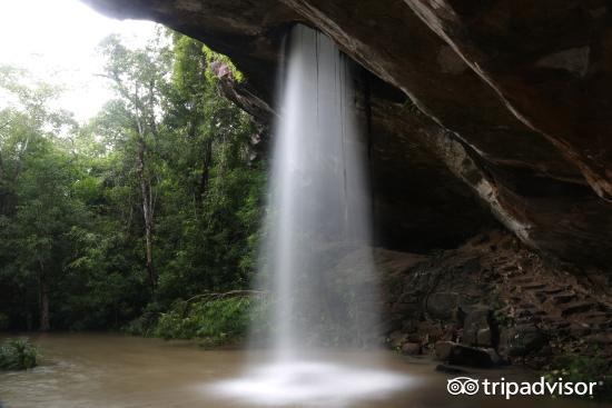 泰国湄公河流域的Pha Taem国家公园,在泰国当地可谓是家喻户晓。除了地质奇观——蘑菇石外,公园北部的森林深处还藏着特别的Sang Chan瀑布。与沿着山崖石壁流下的普通瀑布不同,Sang Chan瀑布是从石崖的一个洞口中流出的。场景奇妙,并且造型上略带羞耻感,也因此吸引了泰国当地民众前来“围观”。