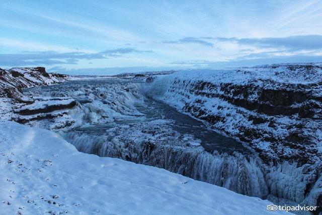 Gullfoss是来自雷克雅未克的黄金圆环上最远的一站。到达那里并不是很困难。瀑布分为上下两个阶段。它们都是可见的,但不同的角度有不同的瀑布视角。冬天的时候要小心,因为从楼梯到景观点都被瀑布的水雾覆盖。在停车场旁边有一家相当不错的商店和餐馆。