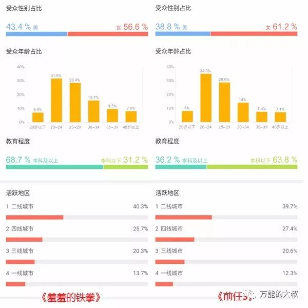 《羞羞的铁拳》与《前任3》用户对比(数据来源猫眼专业版)
