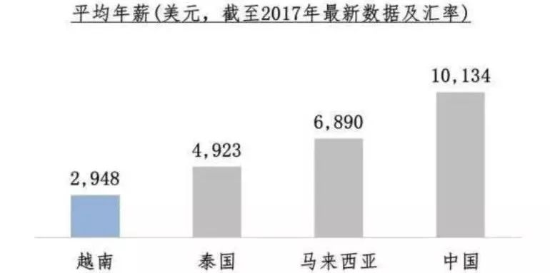 人口红利是推助越南工业发展的重要因素。官方数据显示,越南35岁以下人口占比超过了60%!随着中国劳动力成本的不断升高,越南凭借其较为廉价的劳动力,正在成为新的世界工厂。数据显示,越南劳动力的平均年薪为2948美元,低于泰国的4923美元,更是远低于中国的10134美元。凭借着劳动力成本优势,越南吸引着全球制造业的转移,英特尔、LG、Nike、西门子、三星等跨国公司纷纷在越南设立工厂。