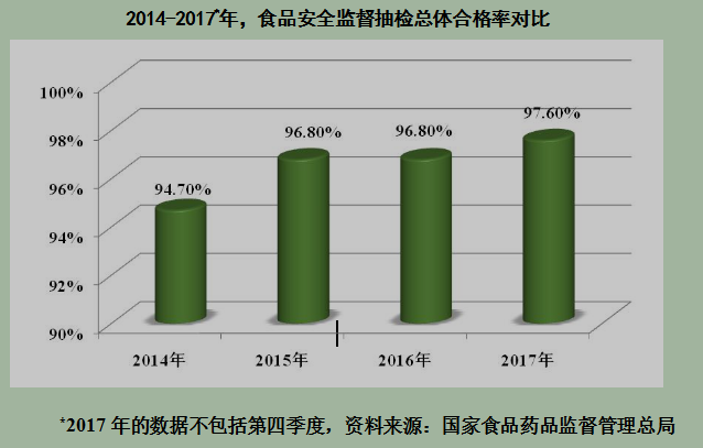 不过,孟素荷也指出中国食品安全的风险永远存在,2017年的三个主要风险依次为: 食品微生物污染(30.4%)、 超量、超范围使用食品添加剂(24%)、 农残和药残问题(21.9%)。在2017年前三季度的国家抽检中,以上三大问题占抽检不合格率的67.3%。