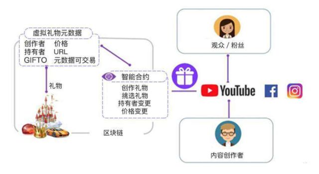 一位接近Gifto项目的直播从业者向《三声》(微信公号ID:tosansheng)解读了Gifto的原理:Gifto实际上是一个去中心化通用虚拟礼物协议。Gifto代币为通用礼物赠送平台的交易货币,以ERC20-标准代币的形式配置在以太坊区块链上,用于观众购买虚拟礼物赠送内容创作者。每个虚拟礼物都以智慧合约的形式应用在以太坊区块链上,而非某个不知名的公链,使礼物具有可持有、可交易的特性,可以独立交易于任何内容平台和系统。因此无论是YouTube还是Instagram,只需要点击一个网页链接,就可以直接送礼。
