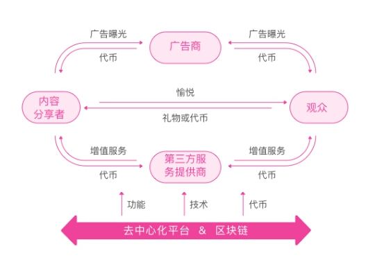 以目前应用区块链技术最为顺手的“网红”为例,长期以来,直播行业对于网红来说的巨大痛点是平台中心化。用户或许打赏了主播100元,但层层盘剥之后,主播只能获得不到20元。虽然主播是直播中唯一的价值内容生产者,但平台却是最大受益人——不光可以从打赏中抽成,还可以依靠主播聚集到平台的流量进行广告变现。而广告主实际上很难直接联系到主播本人,即使冲着主播来,广告主也需要通过直播平台、经纪公司等中间环节。