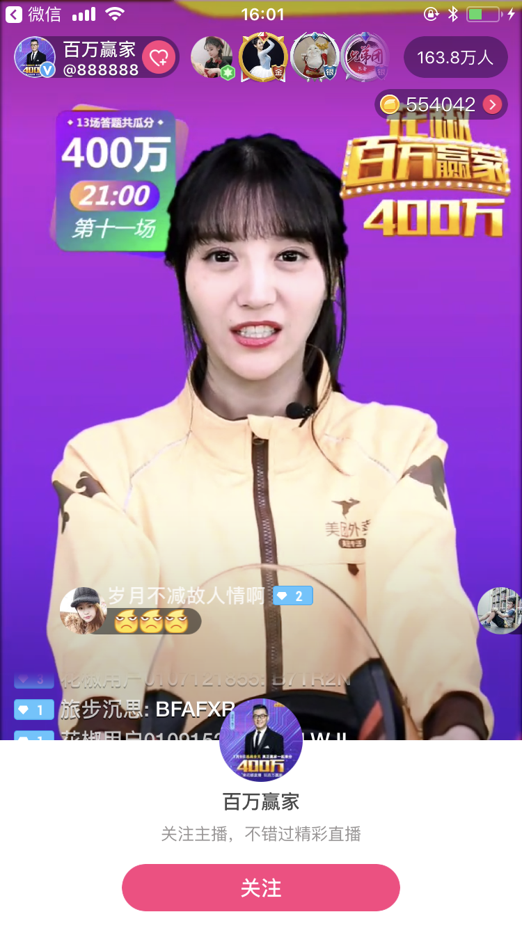 这一做法非常奏效,在百万英雄的直播间评论里,很多人都是第一次听说这些 App,并在询问去哪下载。1 月 7 日,百万英雄在包括今日头条主 App 内的所有旗下 App 中均设置了首页入口。